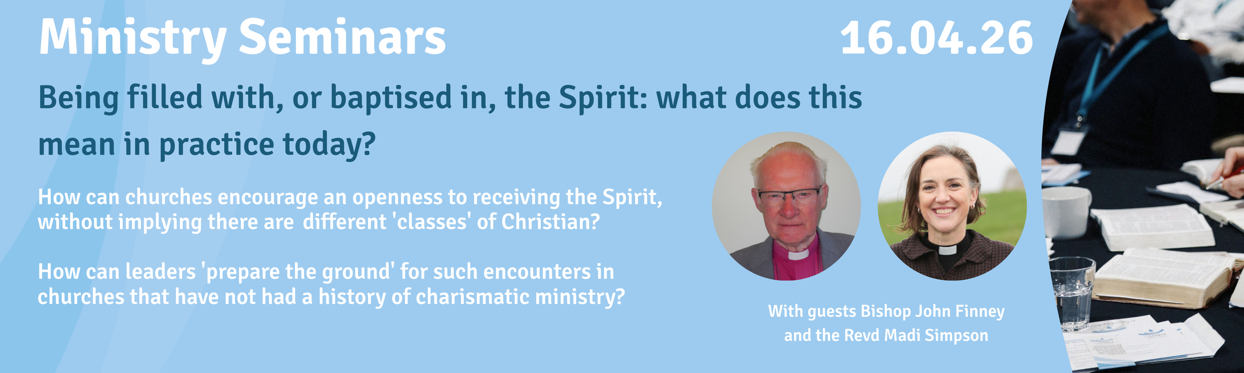 There will be opportunities for discussion in breakout rooms, and a time of plenary feedback/questions. Each seminar will conclude with a time of open prayer.